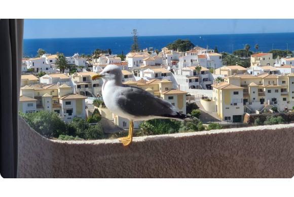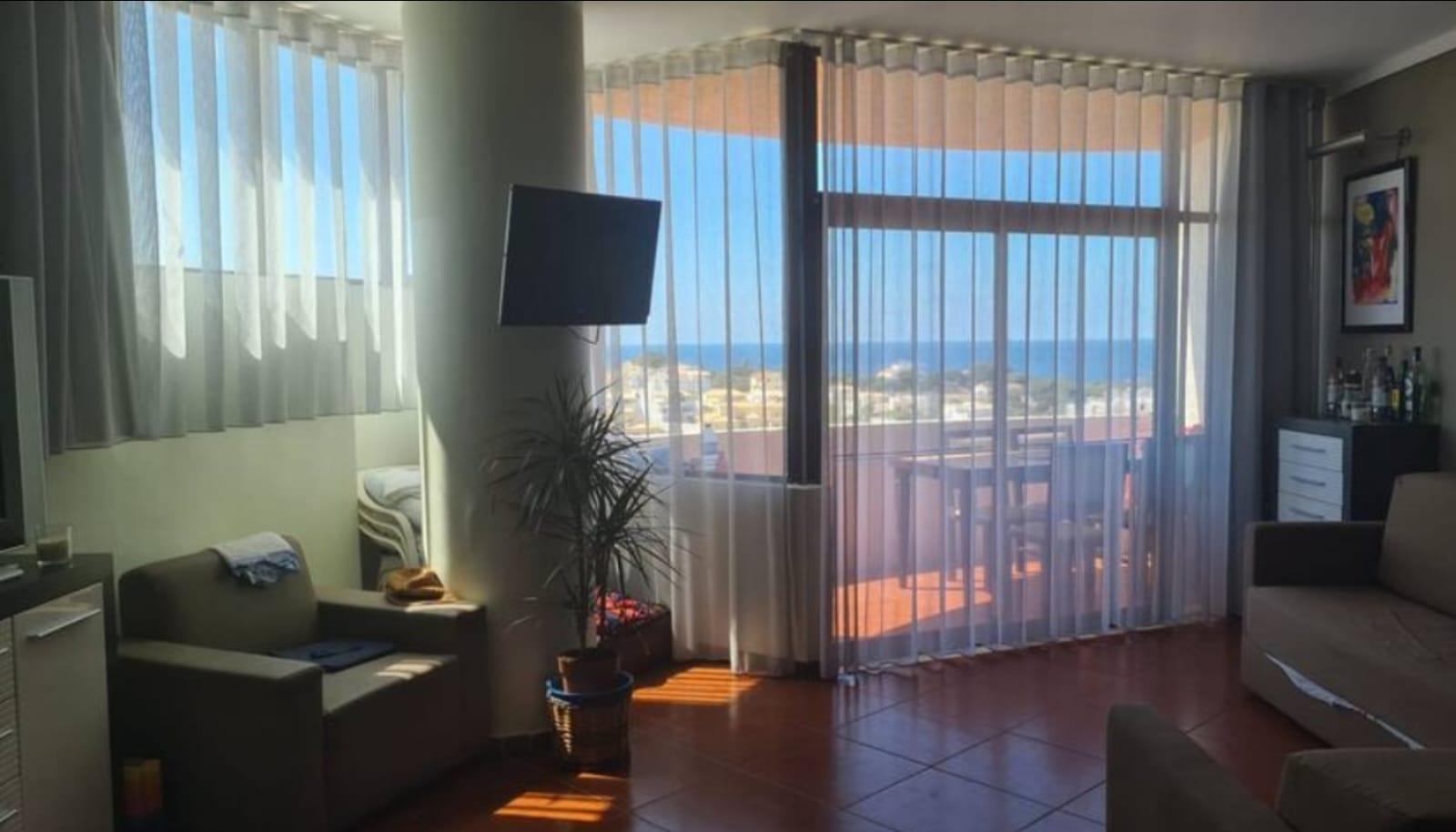 - Sala de estar e de refeições com varanda virada para Sul, linda vista piscina e mar.
